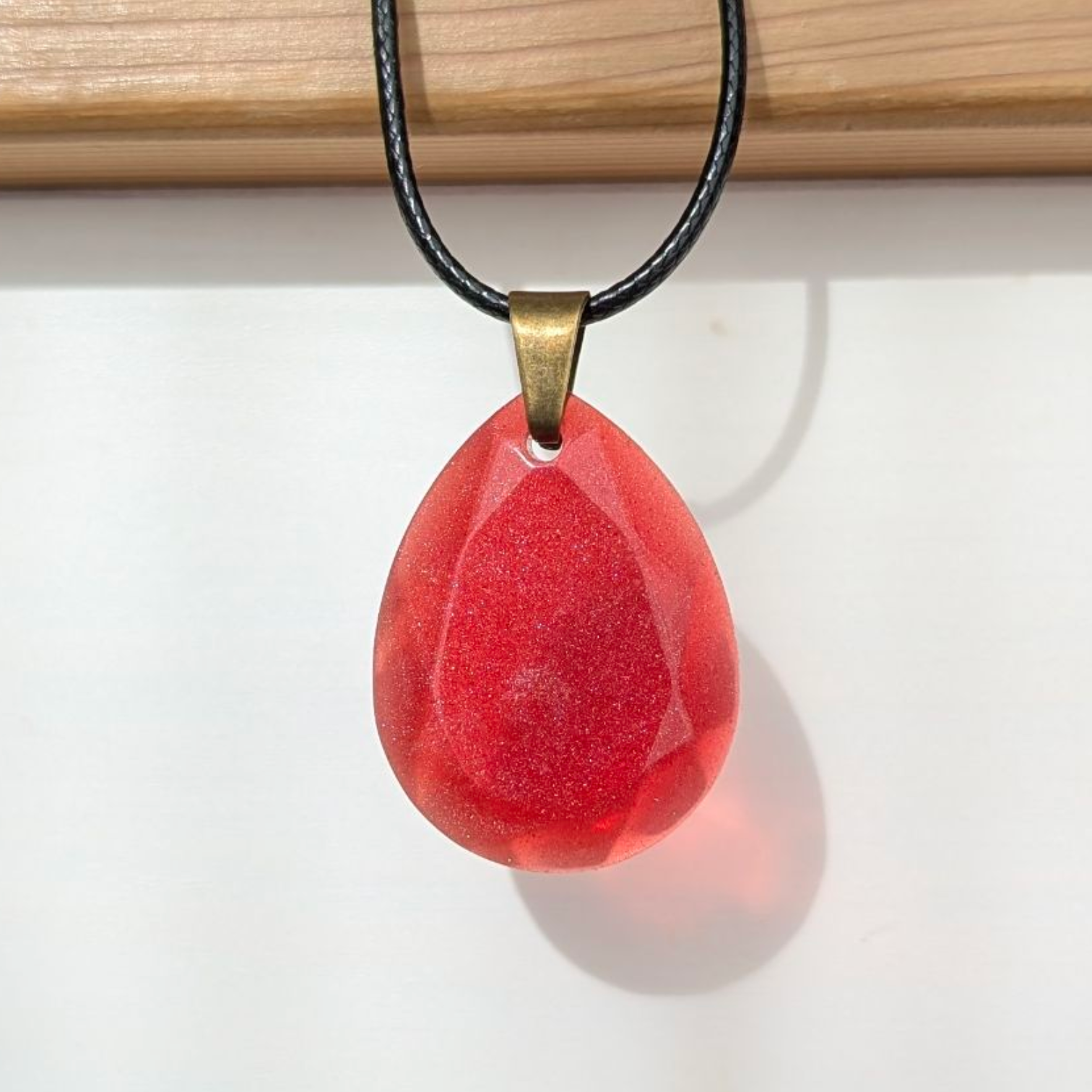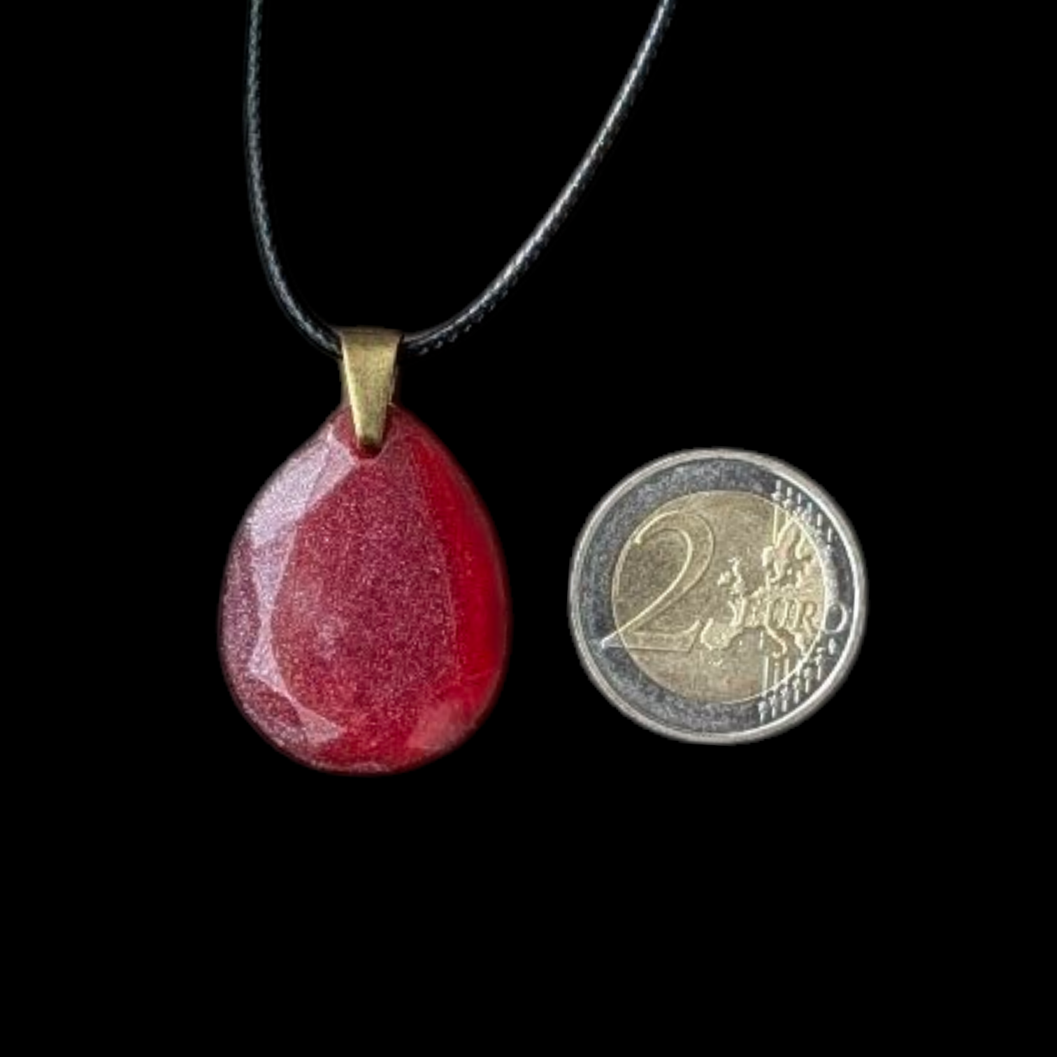 Matière : Résine époxy et résine UV. Cordon en coton ciré, fermoir et chainette en métal.