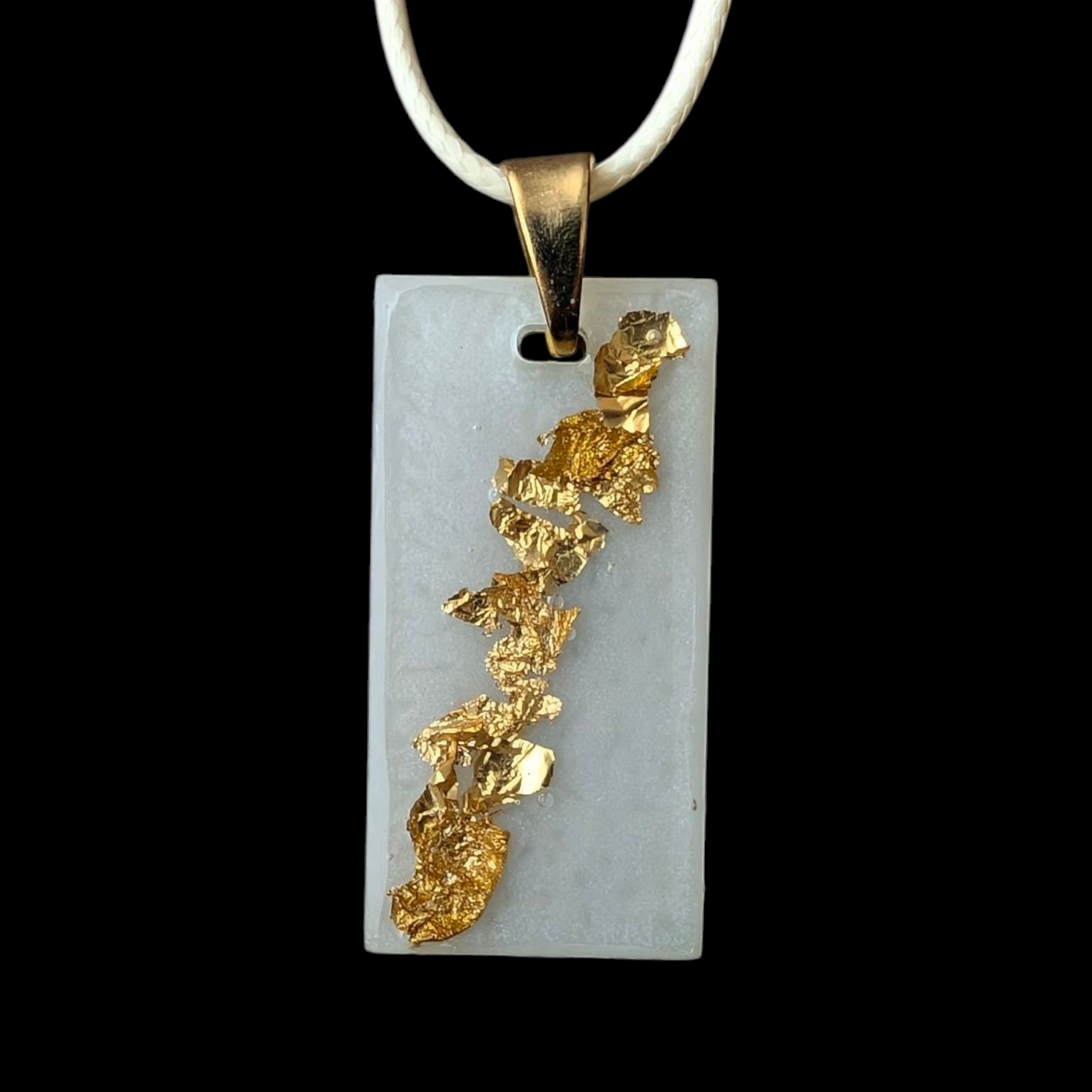 Ein perlweißer Untergrund unterstreicht die edle Seite der zart diagonal angeordneten goldenen Blätter.