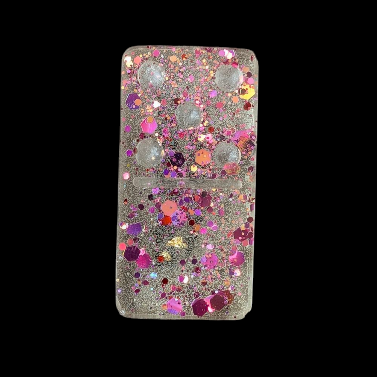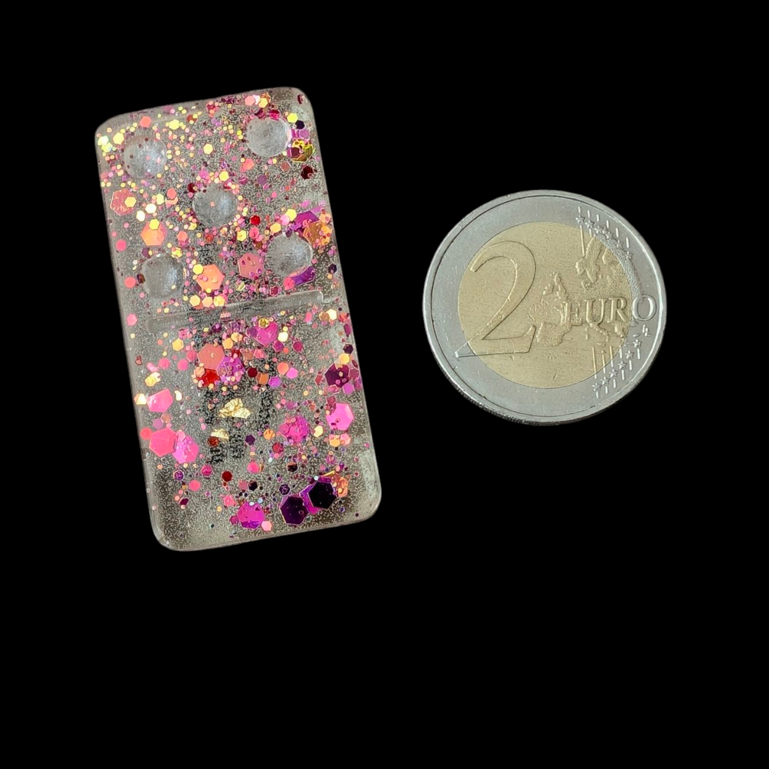 Les paillettes rose aux éclats verts moulées dans la base transparente lui donnent un éclat tout particulièrement joyeux.