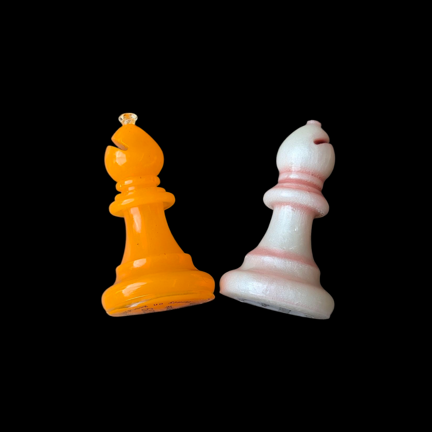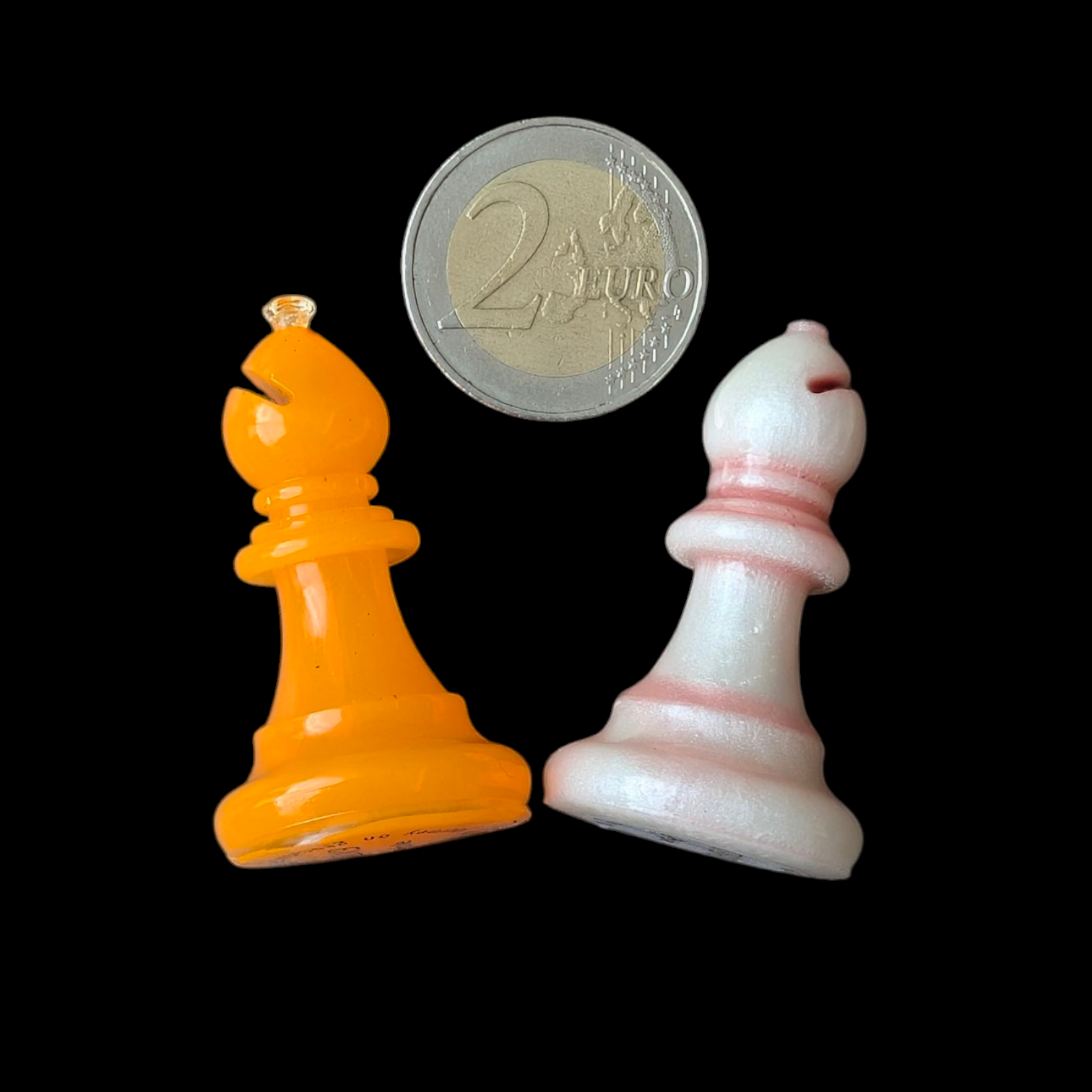 Deux modèles (chacun étant une pièce unique) : orange fluo ou élégant blanc nacré de rouge.