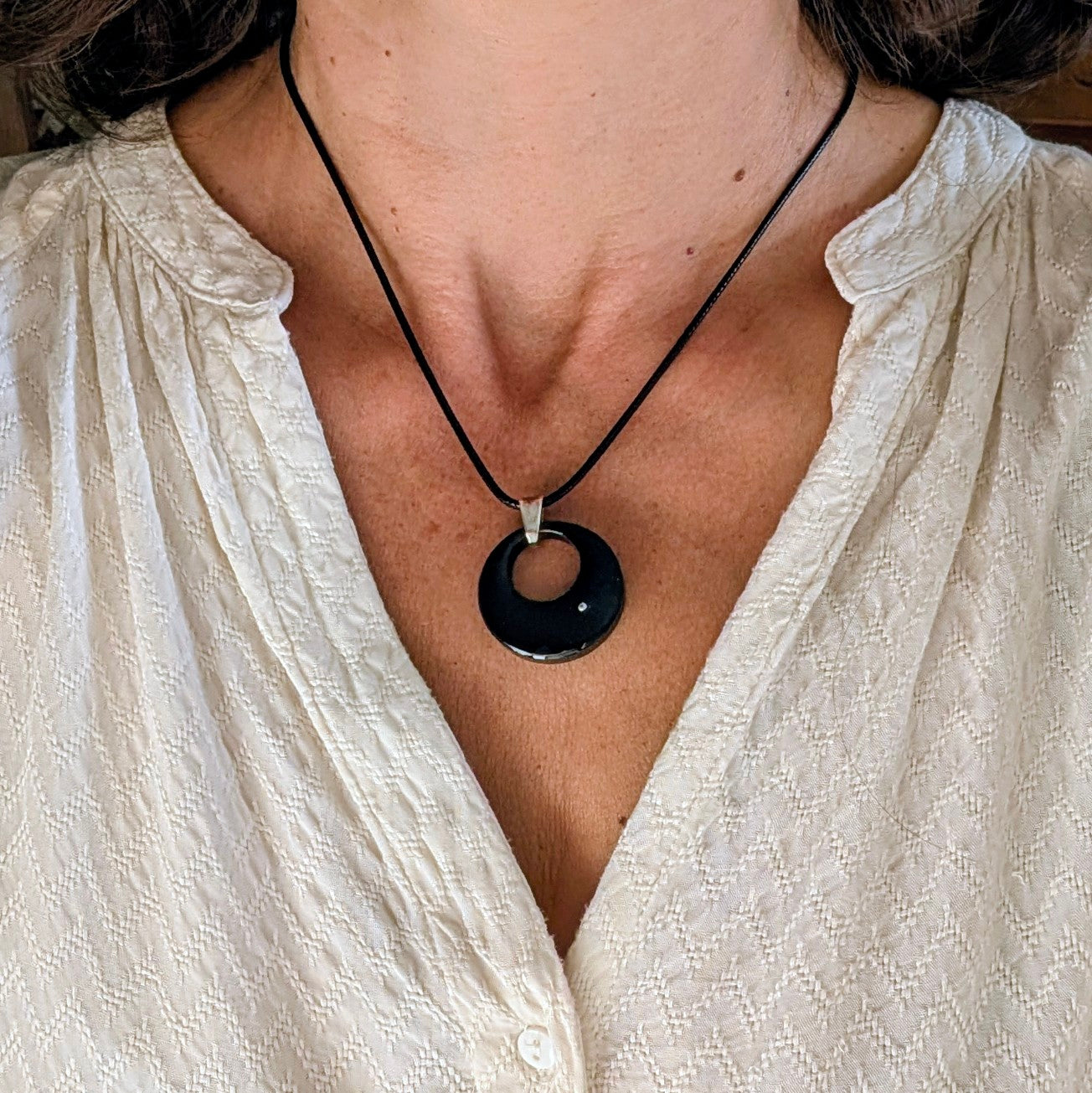 Dimensions : Pendant diameter 3 cm, thickness 5 mm - Waxed cotton cord adjustable from 45 to 50 cm