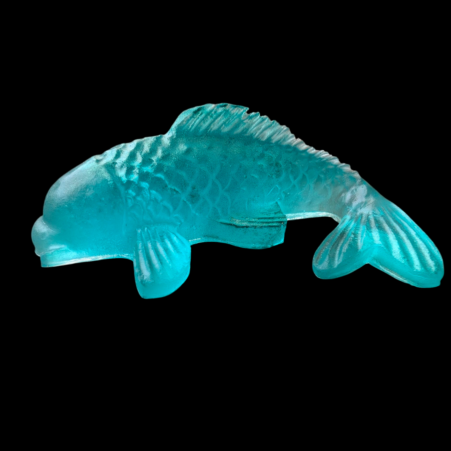Comme son nom l'indique, c'est une carpe que je vous propose... Un poisson, quoi ! En vert translucide délicatement irisé, il est destiné à voyager à travers les océans - oui, même si c'est un poisson d'eau douce, tout est possible avec le Géocaching !