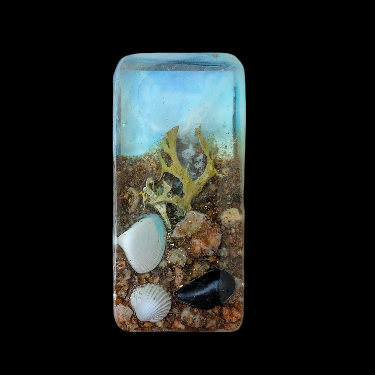 La mer, celle qu'on voit danser le long des golfes clairs... Vacances, détente, été, tant de symboles lui sont associés ! Les coquillages qui agrémentent ces TB ont été ramassés sur les plages de Méditerranée.