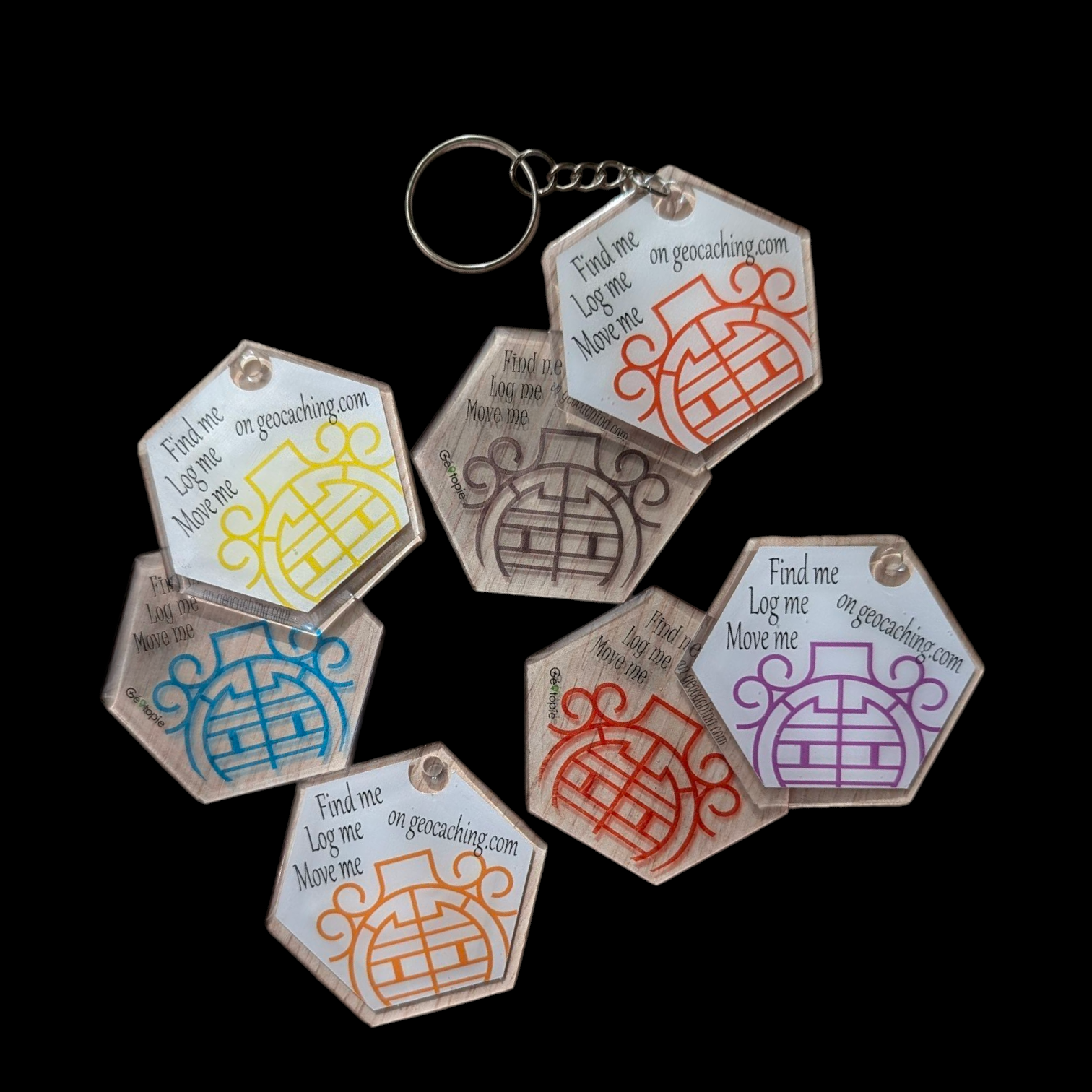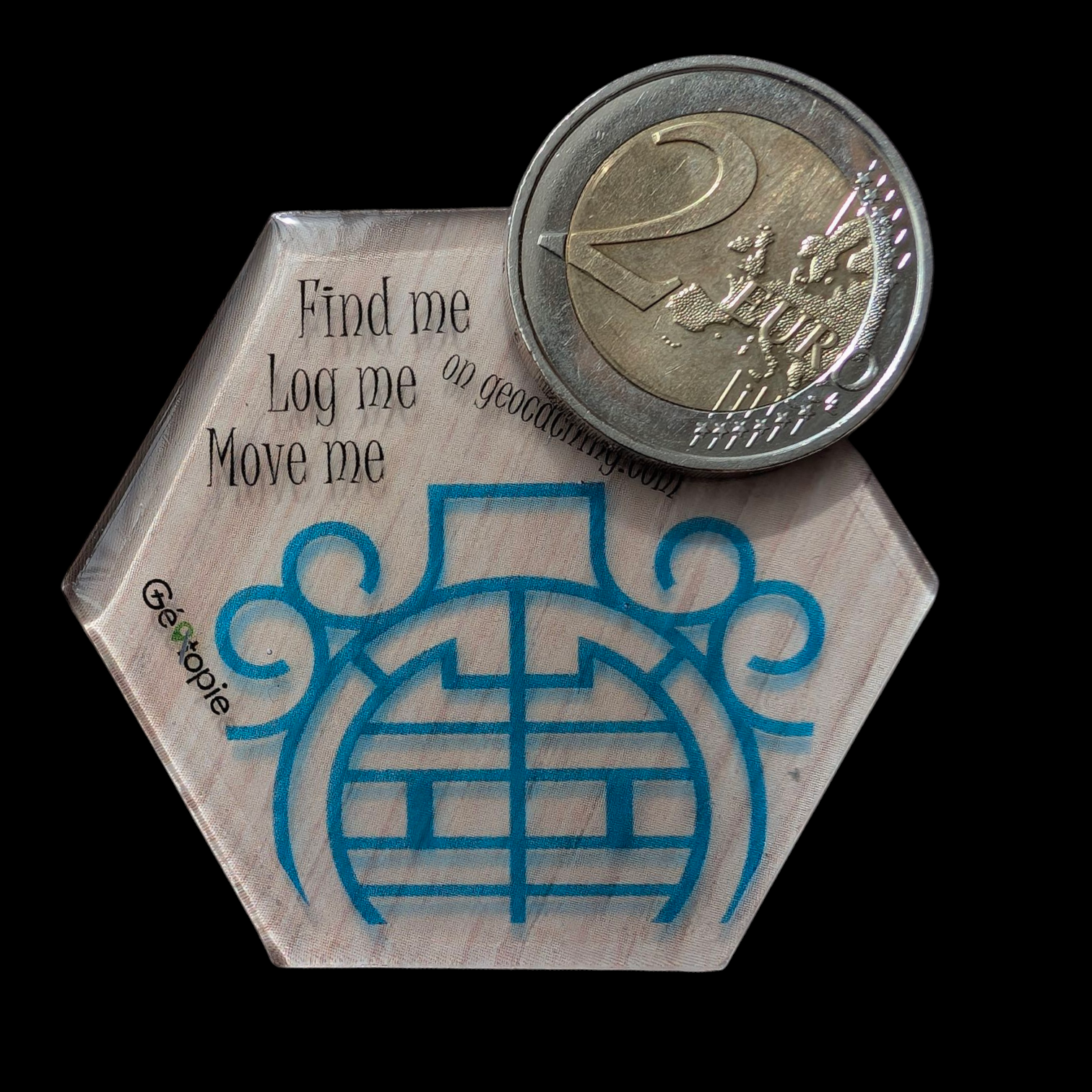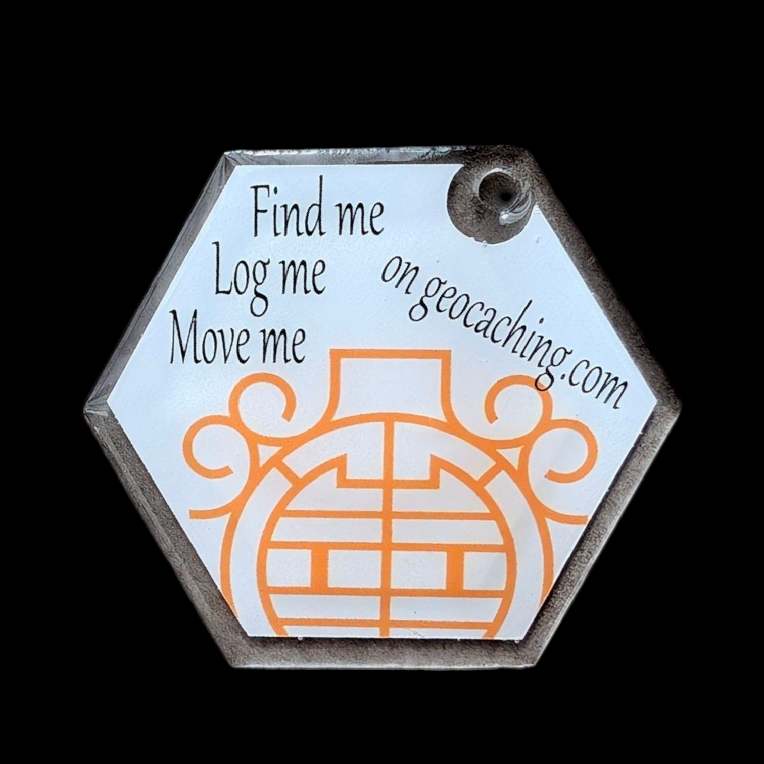 Titou le géocacheur se décline en deux modèles : sur fond blanc (avec code TB au dos) ou transparent.